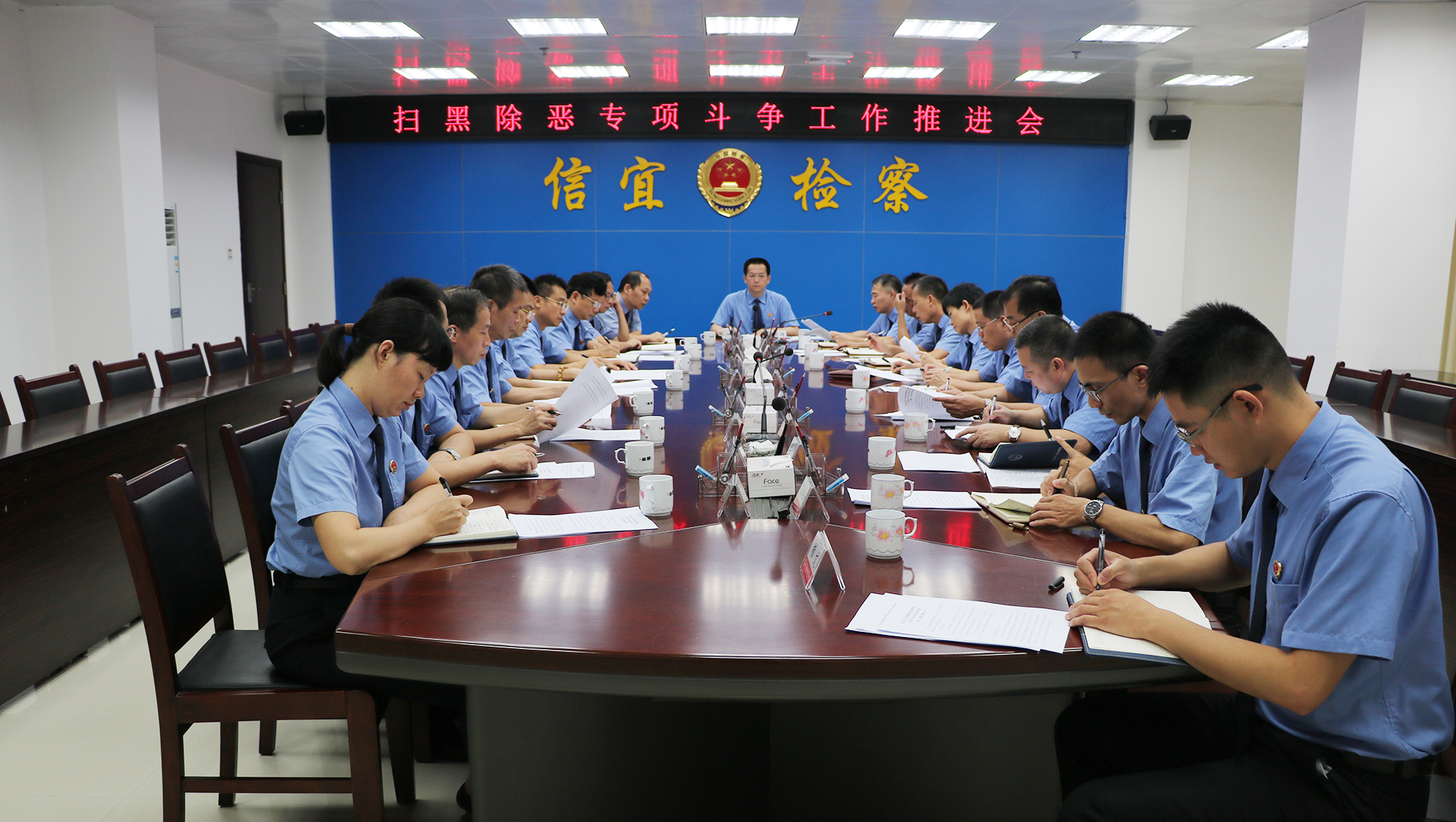 会议学习传达了中央扫黑除恶第8督导组督导广东省工作动员会精神、茂名市扫黑除恶专项斗争工作会精神、全市检察机关扫黑除恶专项斗争推进会精神和信宜市扫黑除恶专项斗争推进会精神,并结合我院工作实际就如何抓好贯彻落实进行了工作部署。会议对我院扫黑除恶专项斗争工作进行了总结,对我院制定的相关机制进行了讨论,进一步推动扫黑除恶专项斗争工作深入发展。
