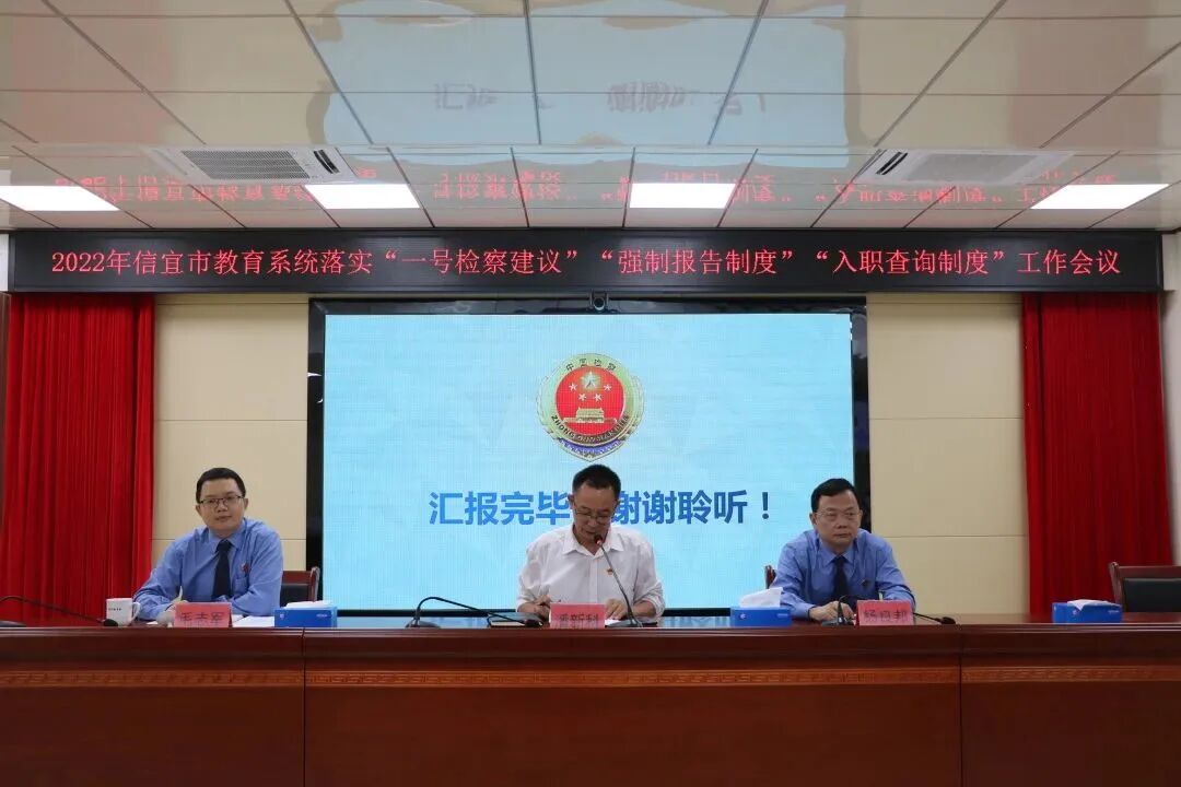 为深入推进各项校园安全制度的落实,共同筑牢校园安全保护网。2022年11月30日,信宜市教育局联合信宜人民检察院召开信宜市教育系统落实“一号检察建议”“强制报告制度”“入职查询制度”工作会议。市检察院党组成员、副检察长杨良邦,教育局党组成员、副局长潘新科,检察院、教育局相关部门同志,各镇(街道)中心学校、中学和市直各中小学校校长参加会议。
