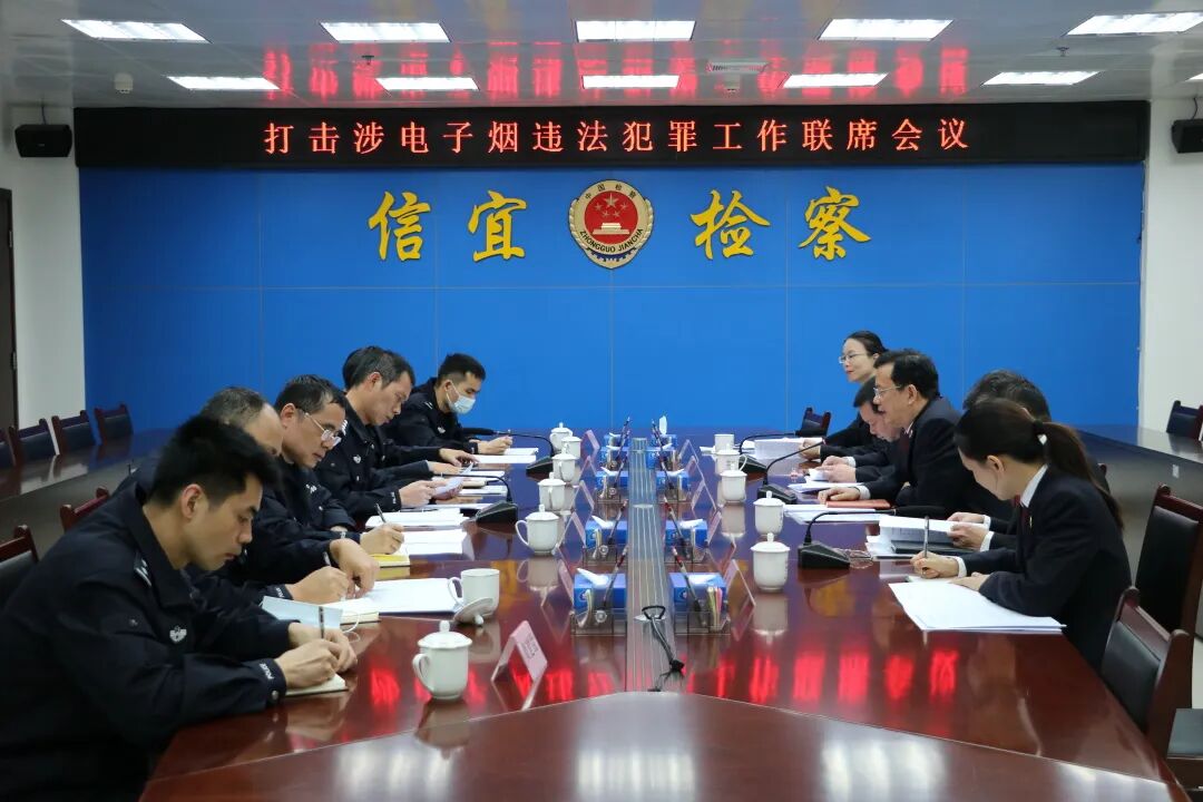为严厉打击涉电子烟违法犯罪活动,强化部门联动和深化社会综合治理,2023年3月1日上午,市检察院联合市法院、市公安局、市烟草专卖局召开打击涉电子烟违法犯罪联席会议。市检察院、市公安局、市烟草专卖局分管领导、市法院刑事审判庭负责人及其他相关工作人员参加会议。